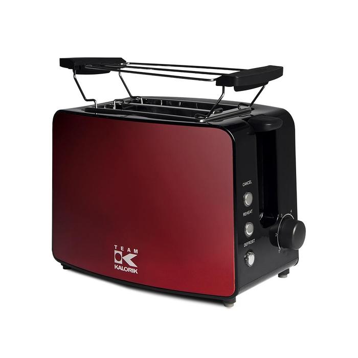 Toustovač pro zdravou snídani, svačinu, nebo večeři se dvěma extra širokými otvory v trendy červené metalíze.